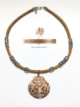 My Island Addiction Artisan Coastal Choker Necklace features a calico Halo with tiny flecks of natural metallic sheen in the Halo ring. Colored by nature itself, the Halo around our signature palm tree, make this a one of a kind ever designed, trademark of the My Island Addiction jewelry line.