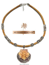 My Island Addiction Brand, artisan shell choker necklace with beautiful sunset "Halo" ring collected from Sanibel Island, Florida.